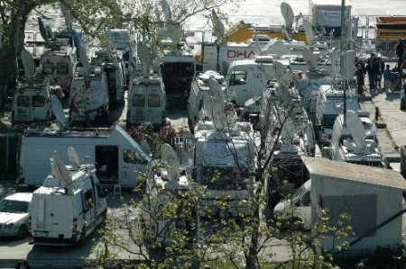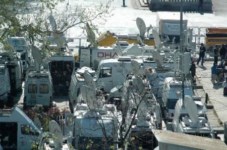 Taksim Gezi Parkı'nda bulunan onlarca canlı yayın aracı ilginç görüntüler oluşturdu. Geceden itibaren Taksim Meydanı ve sendikaların toplanma bölgelerinde yerlerini alan basın mensupları, hazırlıklarını tamamladı.