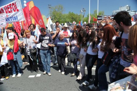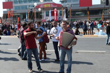Taksim Meydanı'nda kutlanan 1 Mayıs, küçük çaplı olumsuzluklar hariç bayram havasında geçiyor. Meydanı dolduran binlerce kişi, bayramı kutluyor. 1 Mayıs kutlamalarından objektiflere renkil kareler yansıdı. CİHAN