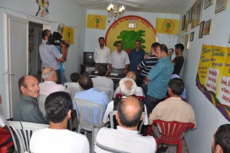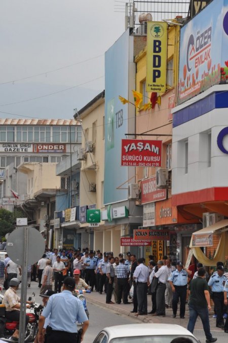Sabahın erken saatlerinde Cumhuriyet Meydanı polis bariyerleri ile çevrildi. Çok sayıda sivil ve resmi polis, Rahime Hatun Mahallesi Dr. Sadık Ahmet Caddesi üzerindeki BDP il binası çevresinde görev aldı. BDP Genel Merkez Disiplin Kurulu Üyesi Hasan Hüseyin Reyhan, İl Başkanı Maşallah Çetin ile birlikte 13 kişi basın açıklamasında bulunmak üzere parti binasında bir araya geldi. Burada bir açıklama yapan BDP Genel Merkez Disiplin Kurulu Üyesi Reyhan, emniyetin aşırı güvenlik önlemi almasını, basın açıklamasına halkın katılımını engellemek üzere psikolojik bir baskı olarak gördüklerini söyledi.