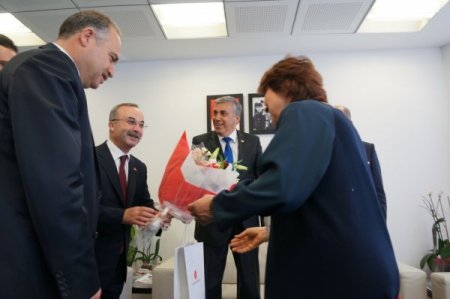 MHP heyeti bayramlaşma için CHP'ye geldi. Siyasi partilerin temsilcilerini CHP Genel Başkan Yardımcısı Umut Oran, Gençlik Kolları Genel Başkanı Emre Doğan ve Parti Meclisi (PM) üyesi Seyhan Erdoğdu konuk ediyor.