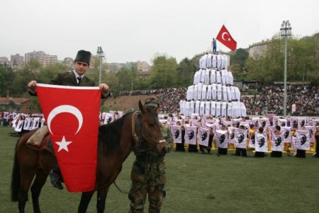 Zonguldak’ta 19 Mayıs Gençlik ve Spor Bayramı etkinliklerinde, maden işçilerinin yer altından servet-i madeniye olarak ifade edilen taş kömürünü çıkarması temsili olarak gösterildi.