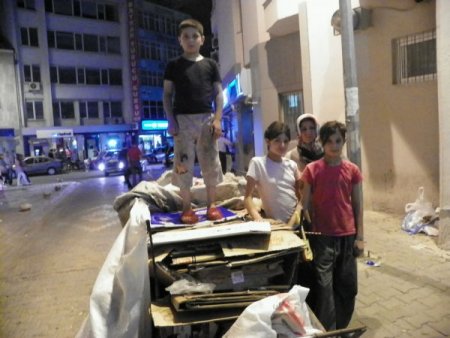 Yaşları 10 ile 14 arasında olan çocuklar gece kağıt toplarken, en çok köpekten korkuyorlar. Ayaklarında yırtık terlik ve üstleri perişan olan çocuklar, buna rağmen evlerine ekmek götürebilmek için canla başla çalışıyor. Evin en küçük oğlu Muhammed (10), annesi Sultan Atlı, kuzenleri Büşra (14) ve Semanur (13) Yıldıran adlı kız çocuklarının yanında kağıt topluyor. Kağıt toplarken, annesi ve kuzenlerini tehlikelerden korumak ise Muhammed’e kalıyor.