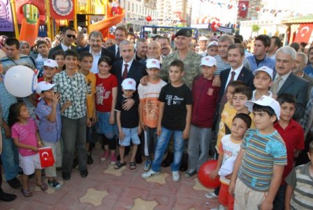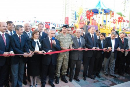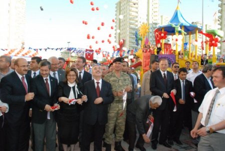 Açılış kurdelesinin kesilmesinin ardından, parkı gezen protokol üyeleri, çocuklarla sohbet etti.