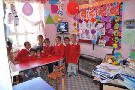 Suruç ilçesinin Karahöyük köyünde anaokulu öğretmenliği yapan İzmirli Meftun Karaca, 6 metrekarelik daracık sınıfta 12 öğrencisine batı standartlarında eğitim veriyor.