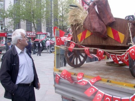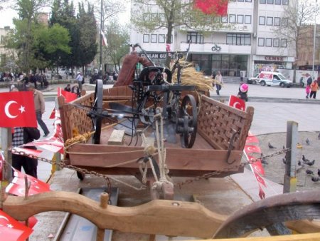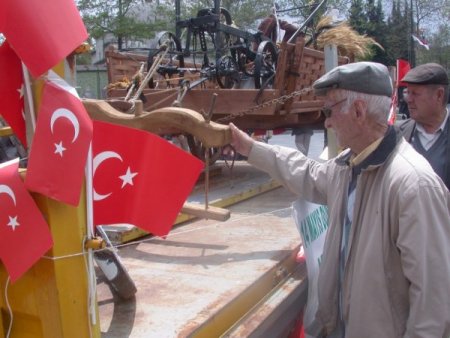 Çorlu Cumhuriyet Meydanı'nda sergilenen tarım aletleri ve makineler, çiftçilerden ve vatandaşlardan yoğun ilgi gördü. Birçok vatandaş da gördüğü eski tarım aletlerini eline alarak eski günlerini hatırladı.