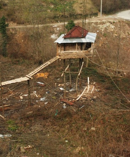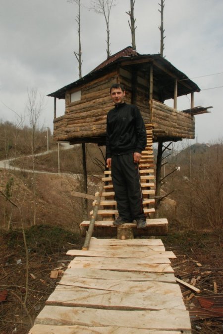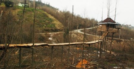 Rize Yağlıtaş Mahallesi'nde yaşayan 30 yaşındaki Yusuf Kuleli, kendisine ait arazisinde bulunan ağaçları kışlık odun yapmak için kesti. Arazide kalan 4 kızılağacı farklı bir şekilde değerlendirmek isteyen Kuleli, ağaçların üzerine tahtalarla ev yapmayı planladı. Arazisindeki ağaçları kullanarak işe koyulan Kuleli, ağaçların üzerine, yerden yedi metre yükseklikte, 30 metrekarelik bir ev ve bu eve ulaşımı sağlamak için 30 metre uzunluğunda tahtadan köprü yaptı.