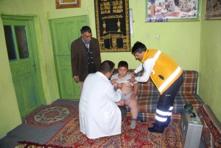 Sağlık Bakanlığı Genel Sağlık Hizmetleri Genel Müdürlüğü Beslenme Ve Fiziksel Aktivite Daire Başkanlığı'nın talimatıyla Ağrı İl Sağlık Müdürlüğü Eğitim Şube Müdürü Mehmet Yolcu, Aile Hekimi Alper Başa ve Doğubayazıt Sağlık Grup Başkanı Dr. Pınar Özden, çocuğun Doğubayazıt'taki evine geldi.