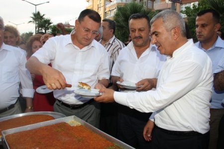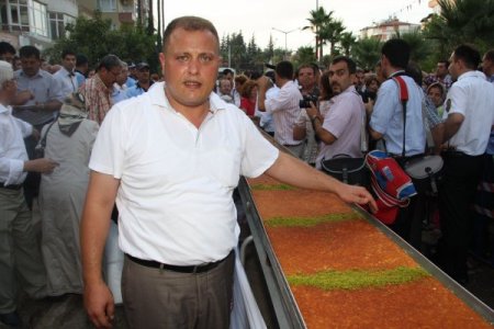 Antakya Belediye Başkanı Lütfü Savaş'ın sembolik olarak hazırlanan künefeyi tatarken ustalar tarafından hazırlanan 72 metrelik künefe binlerce Hataylı tarafından yarım saatte tüketildi. Künefe şölenine katılan CHP Hatay Milletvekilleri Hasan Akgöl ve Mehmet Ali Edipoğlu başta olmak üzere konuklara künefe ikramını Başkan Savaş yaptı.