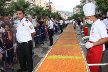 Geçen yıl 71 metre olarak hazırlanan künefe bu yıl Hatay'ın Anavatana katılışının 72'inci yıldönümü anısına 72 metre olarak 6 saatte 14 künefe ustası tarafından hazırlandı. 72 metrelik künefe için 500 kilo tel kadayıf, 250 kilo peynir, 100 kilo tereyağı, 300 kilo şeker kullanıldı. Künefe 5 bin kişiye ikram edildi.
