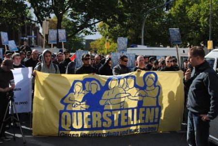 165 Neo-Nazi gösterisine karşılık, aralarında belediye başkanları, üst düzey bürokratlar ve sivil toplum kuruluşlarının yöneticilerinin de olduğu 3 binin üzerinde kişi karşıt gösterilere katıldı. Karşıt gösteriler, Alman Sendikalar Birliği'nin (DGB) organize ettiği gösteride buluştu. Söz konusu karşıt gösteri Adalbertsteinweg üzerinden Elsaßstrasse'ye oradan da inşa edilmekte olan DİTİB Yunus Emre Camii'ne yürüyerek camiye sahip çıktı. Yaklaşık bin kişiyle başlayan karşıt göstericilerin sayısı Ostviertel semtindeki bu yürüyüş sırasında gerçekleşen katılımlarla 3 bini aştı. Nitekim Ostviertel'de gerçekleşen sokak festivaline katılmış olanlarda karşıt gösterilere katılarak destek verdi.