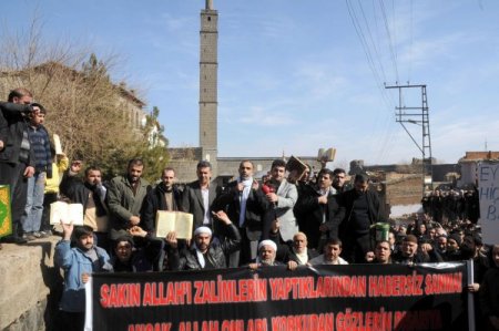 Afganistan’da bulunan NATO üssünde görevli bazı Amerikan askerlerinin Kur'an-ı Kerim yakmasına tepki gösteren Diyarbakırlılar, Hz. Süleyman Camii önünde olayı kınadı.