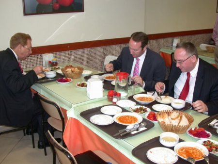 Kuru fasulye pilav ve yoğurttan oluşan menüyü beğeniyle yiyen heyete, öğrencilerin yaptığı ebru çalışmasından oluşan tablolar hediye edildi. Ziyaretten memnun kalan ve okulu beğenen heyet, ardından Eğitim ve Araştırma Hastanesi Toplum Ruh Sağlığı Merkezi açılış törenine katıldı. ABD’li heyete burada, başta Sakarya Valisi Mustafa Büyük olmak üzere, diğer protokol üyeleri yakın ilgi gösterdi.