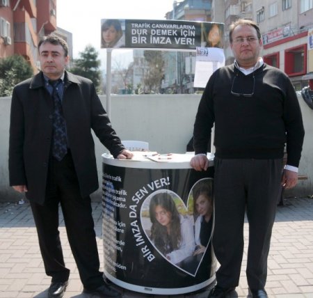 Bursa'da, geçtiğimiz yıl okul yolunda hayatını kaybeden 2 lise öğrencisi kızın babaları, sürücülerin 'taksirle adam öldürmek' suçu yerine 'kasten adam öldürmek' suçundan yargılanması için imza kampanyası başlattı. Kasım ayındaki trafik kazasında öğrenciler Didem Zeynep Çakar (15) Ve Ezgi Nil Topuz minibüs sürücüsü G.Ç.'nin çarpması sonrası hayatlarını kaybetmişti. Bursa 1. Ağır Ceza Mahkemesi'nde 'Taksirle Birden Fazla Kişinin Ölümüne Sebebiyet Vermek' suçundan yargılanan G.Ç.’nin 15 yıla kadar hapis talebiyle yargılanıyor. Ölen kızların ailesi ise, davanın taksirle değil kasten ölüme sebebiyet vermek suçundan açılması için girişimlerde bulundu. Unicef aracılığıyla imza kampanyası başlatan her iki aile 1 milyon imzayı hedefliyor. Aile, topladıkları imzaları yeni yasa tasarısı için meclise gönderecek. Osmangazi Metro istasyonu önünde kızlarının fotoğraflarıyla kaplı stant açan ölen kızların babaları Sinan Çakar ve Saffet Topuz, imza toplamaya başladı. Ezgi Nil Topuz’un babası Saffet Topuz, saatte 120, 130, 140 kilometre hız yapan birinin kaza yapınca bunun 'taksirli suç' kabul edilmesine karşı çıktı. Bunun bile yapılan bir iş olduğunu savunan baba Topuz, bu konudaki yasanın güncellenmesini istedi. Topuz, "Biz üreteceğiz düzenlemesini ve uygulamasını yetkili birimlere gönderdikten sonra artık onların çalışmalarını bekleyeceğiz." dedi. "BU GAZ SİLAH OLARAK KULLANILMASIN"Didem Zeynep Çakar'ın babası Sinan Çakar ise, şunları söyledi: "Artık çocuklarımız ölmesin. Vatandaş bilsinki bu gaz silah olarak kullanılmasın, bunu yaptıktan sonra taksirle değil kasten adam öldürmekten ömür boyu yargılanacağını bilmesi gerekir. Bizim bütün amacımız bu yasaların değişmesini sağlayıp milleti Avrupalı yapmak. Eğer biz bu çocuk haklarını imzaladıysak Türkiye Cumhuriyeti olarak bunlara uymak zorundayız." CİHAN
