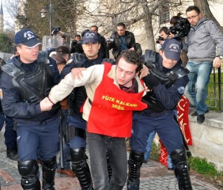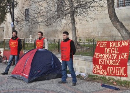 Malatya Kürecik’te kurulması planlanan NATO Füze Savunma Sistemi’ni protesto amacıyla, derneğe üye öğrencilerin çadır kurma ısrarı sürüyor. Grup üyeleri, Çilingirler Çarşısı’ndan eylemi yapacakları parka gelerek basın açıklaması yaptı.