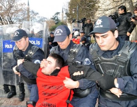 Edirne Gençlik Derneği üyesi üniversite öğrencilerinin kurmak istedikleri açlık grevi çadırına polis müdahale etti.