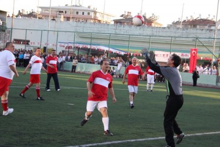 Maçın başlangıç vuruşunu Antakya Belediye Başkanı Lütfü Savaş ve Merhum Erhan Aksay’ın eşi Meziyet Aksay yaptı. Zevkli ve çekişmeli geçen maçta, Adalet eski Bakanı Sadullah Ergin bir gol atarken, sembolik maç 2-2 sona erdi.