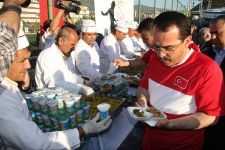 Turnuvanın açılış maçı öncesinde konuklara ve takım oyuncularına mercimekli aş ikram edilirken, ikrama Antakya Belediyesi Mehmet Takımı eşlik etti.