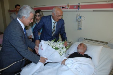 Protokol üyeleri Numune Eğitim ve Araştırma Hastanesine geçti. Vali Vekili Deniz ve beraberindekiler, servislerde yatan hastalarla bayramlaşarak, acil şifalar dilediler. Deniz ve Aldırmaz, hastanede tedavi gören hastalara çeşitli hediyeler verdi.