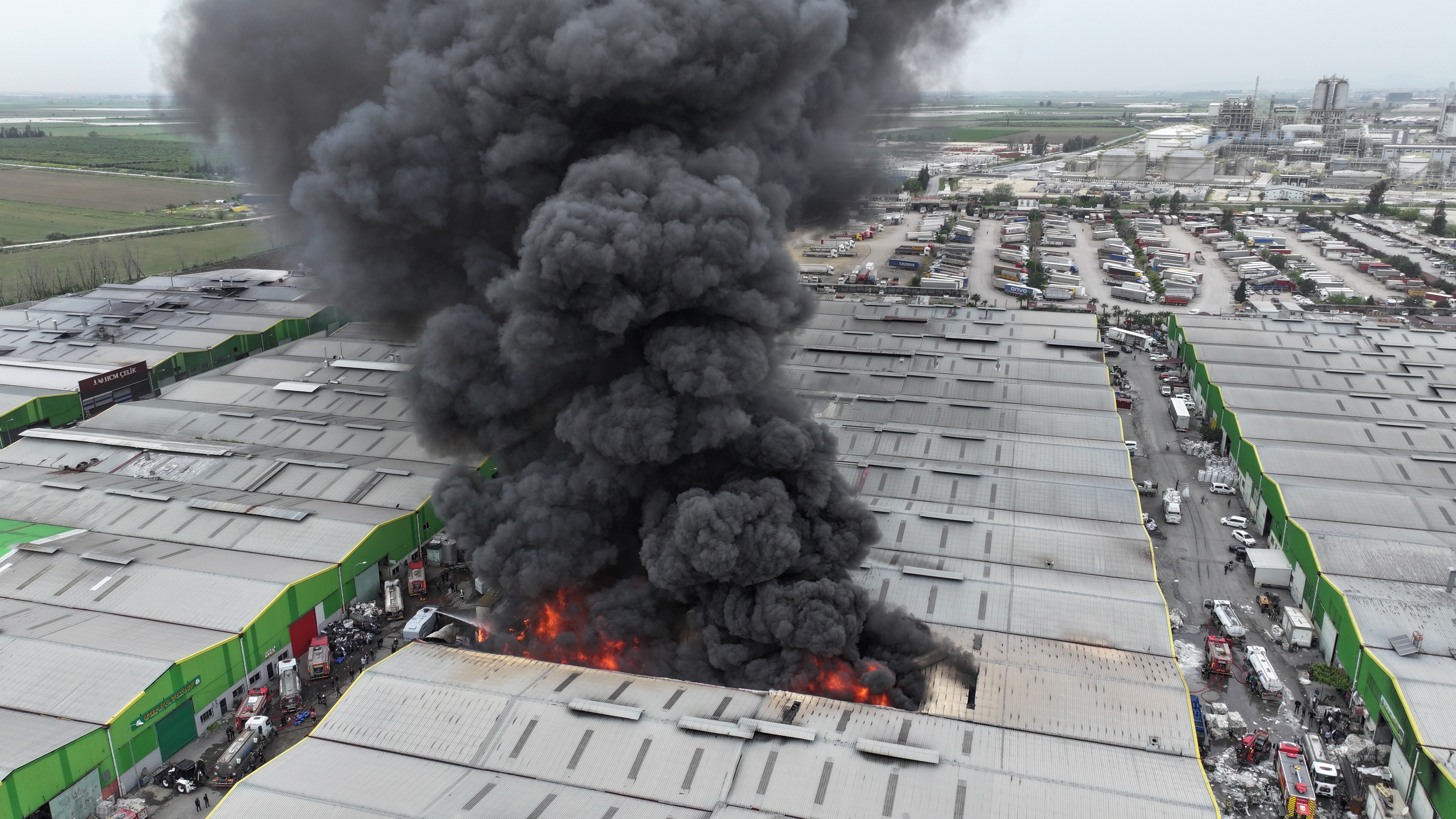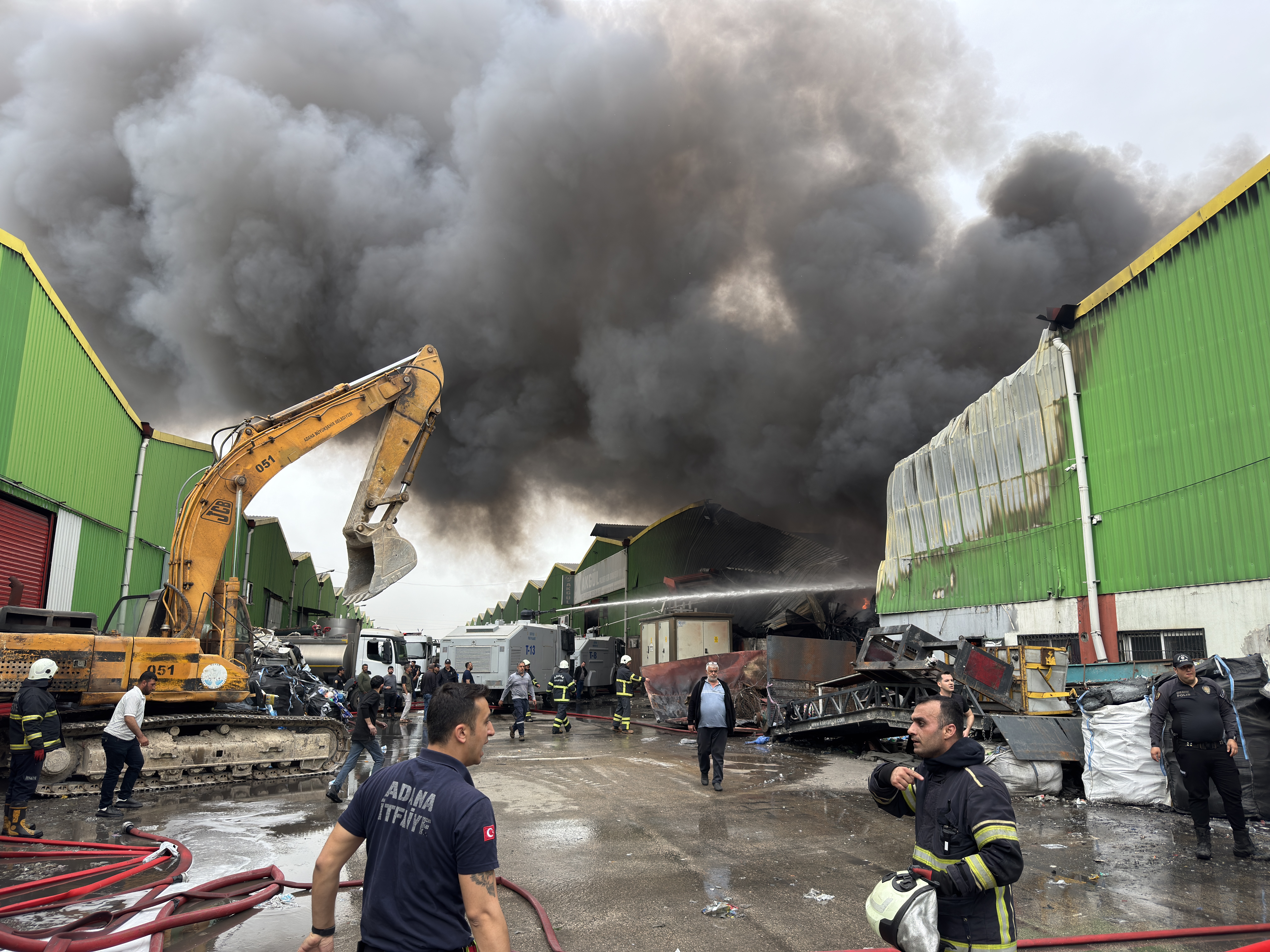 "Geri dönüşüm tesisimizin depo alanında, yani bu atıkların biriktirildiği ve işlendiği alanda yangının çıktığını arkadaşlarımız ifade ediyor. Zaten haberimiz olur olmaz hem itfaiye ekiplerimizi hem emniyetimize ait TOMA'larımızı hem diğer kurumlarımızdaki arazözlerimizi, iş makinelerimizi, personellerimizi hızlıca buraya sevk ettik. Yangın sağındaki ve solundaki yaklaşık 5 iş yerimize sirayet etti ama arkadaşlar hem arkadan hem yan taraflardan yangını çevrelediler."