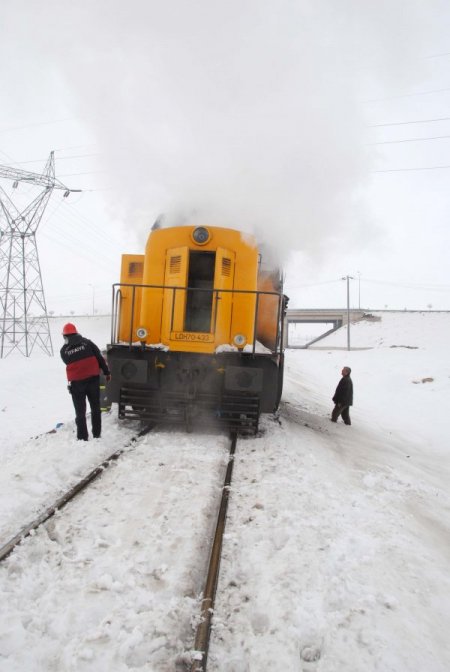 Afyonkarahisar'da özel bir firmaya ait manevra makinesi olarak kullanılan tamir ve vagon çekmeye yarayan lokomotifte yangın çıktı. İçinde işçilerin de bulunduğu lokomotifteki yangın itfaiye ekiplerin müdahalesi sonucu sündürüldü.
