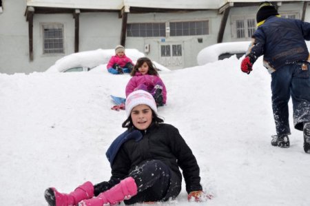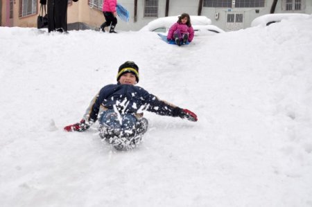 Sabahın erken saatlerinde kendilerini sokağa atan çocuklar kartopu oynayıp, kardan adam yaptı. Çocuklar, ellerine geçirdikleri kömür torbası, elma kasalarını kızak niyetine kullanarak karın tadını çıkardı.