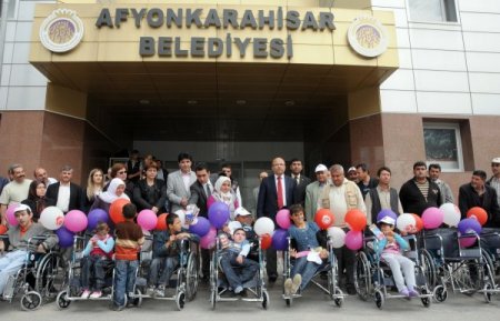 Afyonkarahisar Belediyesi, 15 engelliye tekerlekli sandalye dağıttı. Belediye Başkanı Burhanettin Çoban, belediye binası önünde düzenlenen törende, bir hayırsever iş adamının desteğiyle alınan tekerlekli sandalyeleri engelli vatandaşlara verdi.