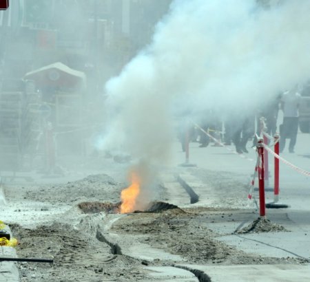 Vatandaşların ihbarı üzerine olay yerine gelen polis, çevrede güvenlik önlemi aldı. Alev alan boru, görevlilerin yangın tüpüyle müdahalesine rağmen söndürülemedi. Yangın, yetkilerin doğalgazı merkezden kapatması ve itfaiye ekiplerinin müdahalesi sonucu söndürülebildi. CİHAN