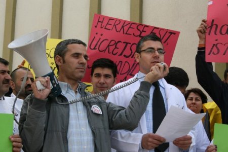 Hekimlerin, 'Tam Gün Yasası ve Performansa Dayalı Ücret' uygulamasını protesto etmek ve özlük haklarının korunmasını istemek amacıyla Türkiye genelinde gerçekleştirdiği iki günlük iş bırakma eylemine, Ağrı'dan çok az sayıda sağlık çalışanı katıldı.