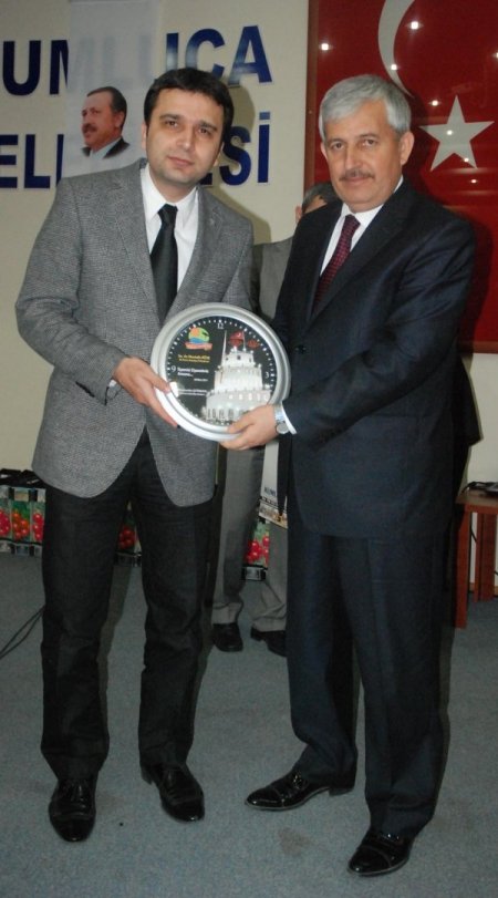 AK Parti Yerel Yönetimler Başkanlığı tarafından düzenlenen Belediye Başkanları Toplantısı Kumluca Belediyesi'nde yapıldı. Kumluca Belediye Başkanı Hüsamettin Çetinkaya (sağda) AK Parti İl Başkanı Mustasa Köse'ye saat hediye etti CİHAN