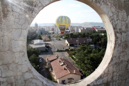 Yenişehir semtinde bulunan Karayolları avlusunda havalanan uçan balon 7 bin yıllık tarihi Mardin semalarında yaklaşık bir saat boyunca tur attı. Tarihi kent Mardin semalarında uçan balondan Muammer Güler’in tanıtım afişinin yanında, AK Parti Hükümetinin yaptığı icraatları anlatan broşürler vatandaşlara attı.