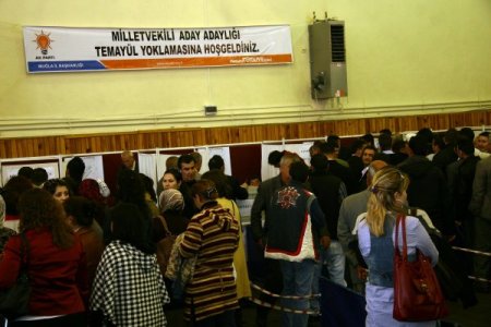 AK Parti Muğla İl Teşkilatı 12 Haziran'da yapılacak olan seçimler için aday belirleme çalışmasının ilk aşaması olan temayül yoklaması için sandık başına gitti. Muğla Spor Salonu'nda 12 sandıkta gerçekleştirilen temayül yoklamasına 34 aday adayından 31 aday adayı katıldı. Milletvekilleri Mehmet Nil Hıdır, Prof. Dr. Yüksel Özden ve eski il Başkanı Gültekin Akça temayül yoklamasına katılmadı. Sabah saat 10.00’da başlayan oy kullanma işlemleri için 12 sandıkta her ilçe için ayrı sandık kuruldu. Muğla'da 3 bin 335 delegesi bulunan AK Parti Milletvekili aday adayları temayül yoklamasında 2 bin 48 delege oy kullandı. Afyon Milletvekili Sait Açba'nın yaptığı temayül yoklamasında oy kullanma işlemi sırasında sık sık nasıl oy kullanılacağı hakkında uyarı yapıldı.Temayül yoklamasında İl Yönetim Kurulu Üyeleri, İl Gençlik Kolları, İl Kadın Kolları, İlçe ve belde yönetim kurulu üyeleri, İlçe ve belde Gençlik Kolları ve Kadın Kkolları üyeleri, İl Disiplin Kurulu üyeleri, İl Demokrasi ve Hakem Kurulu üyeleri, İlçe ve Belde Belediye Başkanları, İlçe ve Belde Belediye Meclis üyeleri, İl Genel Meclis Üyeleri, köy ve mahalle temsilcileri oy kullandı. Ahmet Kestepli, Ali Boğa, Alper Kabasakal, Ayhan Çintumur, Bekir Doğan Demir, Bilal Demir, Bekir Tavas, Faruk Coşkun, Hayati Nizamoğlu, İbrahim Kocabıyık, İlyas Yolcu, İsmail Baykal, Kemal Kaytan, Mehmet Akif Demiröz, Mehmet Tüfekci, Mehmet Yavuz Demir, Mestan Yayman, Metin Öztürk, Muhsin Eryılmaz, Mustafa Er, Mustafa Gökay, O. Seyfi Terzibaşıoğlu, Osman Demirel, Yelda Erol Gökcan, Rasih Deveci, Recep Aşuk, Tülin Suna Şahin, Ümran Akdokur, Yeşim Avcı, Zafer Yıldırım ve Zübeyda Fellahoğlu.AK Parti Muğla İl Başkanı Nihat Öztürk, yüzde 70’lik bir katılımla temayül yoklamasını gerçekleştirdiklerini belirterek, “AK Parti üçüncü defa milletvekili genel seçimlerini yaşıyor. İlk defa 34 aday adayı başvuru yaptı. Bizim için aday adayı sayısının çok olması partimize olan destek ve güvenden kaynaklanıyor. 11 Nisan’da kesin adaylar açıklanacak. Fakat tüm aday adaylarımızın desteği ile Muğla’da birinci parti olacağız." dedi. AK Parti Muğla temayül yoklamasında Mestan Yayman 1179 oy, Ali Boğa 1073 oy, Mustafa Er 886 oy, Hayati Nizamoğlu 850 oy, Yeşim Avcı 827 oy, Muhsin Eryılmaz 813 oy, Bekir Tavas 735 oy, Bilal Demir 616 oy, Yelda Erol Gökcan 532 oy ve O. Seyfi Terzibaşıoğlu 483 oy aldı. CİHAN
