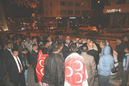 İddialara göre, bina üzerinde bulunan Başbakan Recep Tayyip Erdoğan’ın posteri, MHP’liler tarafından AK Partililerden izin alındığı gerekçesiyle indirildi ve yerine üç hilalli bayrak asıldı. AK Partililer, MHP’liler ile görüşerek miting sonrasına kadar Başbakan’ın posterini asmayacaklarını, ancak parti binalarının üzerinde bulunan MHP’nin üç hilalli bayrağını indirmeleri istediler. Bunun üzerine MHP’liler üç hilalli bayrağı indirdikten sonra AK Partililer Başbakan’ın posterini binaya tekrar astılar. Buna tepki gösteren MHP’liler, AK Parti il binasına yürüdü ancak polis gençlerin parti binasına girişini engelledi.