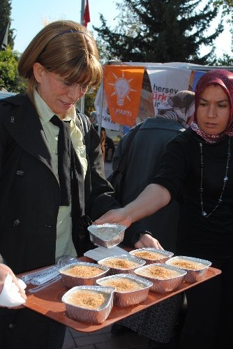 AK Parti Kadın Kolları Başkanlığı, geleneksel 7'nci aşure dağıtımında ilk kaseyi Ilıca Belediye Başkanı Rafet Ünal'a verdi. AK Partili kadınların aşure ikramına ilçede tatile gelen İngiliz, Alman ve Fransız turistler de ilgi gösterdi.