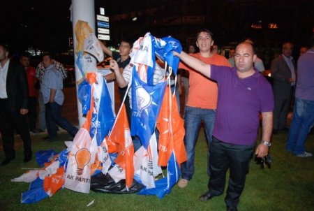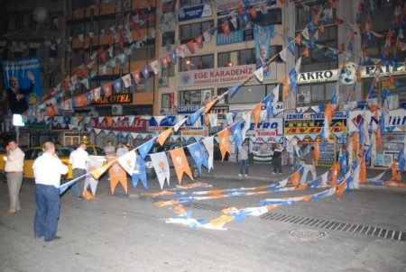 İddialara göre, meydanda bayrak süslemesi yapan AK Partili 3 kişiye, CHP'li bir grup saldırdı. CHP'liler bayrakları indirdi. Olaylar üzerine meydana toplanan her iki partinin üyeleri arasında tartışma başladı. Kısa sürede meydana gelen polis ekipleri olayları yatıştırmak için her iki tarafın yetkilileri ile görüştü. Ara ara gerginliklerin yaşandığı meydanda CHP'liler, "İzmir laiktir laik kalacak", "Burası İzmir Kayseri değil" şeklinde sloganlar attı. Seçim çalışmaları kapsamında AK Parti ilçe binasının önünde meydana bayrak asmak için çalışma yaptıklarını belirten AK Partililer, saldırıyı kınadıklarını dile getirdi.