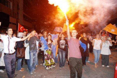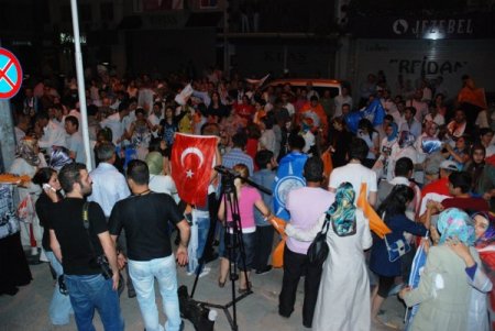 Seçim sonuçlarının açıklanmasıyla birlikte AK Partililer, il başkanlığı önünde toplanmaya başladı. Parti önüne kurulan ses sistemiyle birlikke müzik eşliğinde halay çeken partililer, konfeti ile geceyi renklendirdi.