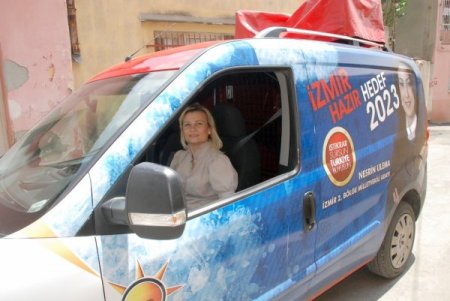 Genel seçimde İzmir’de birinci olmayı hedefleyen AK Parti’nin, 100’den fazla anons aracından birini Ayşen Talay kullanıyor. AK Parti İzmir İl Başkanlığı’ndaki anons araçlarını kullanan ilk kadın şoför unvanını alan Talay, her gün şehri sokak sokak dolaşıyor. AK Parti 2. bölge milletvekili adayı Nesrin Ulema’nın seçim arabasını kullanan Talay, günlük 200 kilometreye yakın yol katediyor. İlgiden memnun olduğunu belirten Talay, seçim araçlarında ilk defa bir kadın şoför gören İzmirlilerin, inanamayıp birkaç defa dönüp bakmasından da mutlu olduğunu söylüyor.