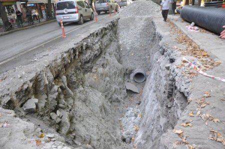 Akdemir, Gazipaşa Caddesi Camlı Köşk önünde devam eden çalışmalarda kaya çıkması sonucu işlerin aksadığını, bu nedenle kaya kırma makinesi aldıklarını dile getirdi.
