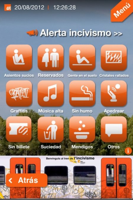 Katalonya Bölgesi Demiryolları (FGC) uygulamasında bulunan "Alerta incivismo" seçeneğiyle, koltuk üzerine ayakları koyma, durakları kirletme, sakatlar ve yaşlılara ayrılan yeri vermeme, dilencilik yapma veya yüksek sesle müzik dinleme gibi kabahatler anında ihbar edilebiliyor.