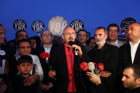 CHP Genel Başkanı Kemal Kılıçdaroğlu konuşmasında, Başbakan Recep Tayyip Erdoğan’ı hedef aldı. Kılıçdaroğlu, “Eğer bir ülkenin başbakanı çıkıp ‘Siz kendinizi ne sanıyorsunuz’ diye sorarsa verilecek yanıt çok basit; onlar sanatçılar, kendilerini bir şey sanmıyorlar. Ama ben Sayın Başbakana sesleniyorum; Sayın Başbakan sen kendini ne sanıyorsun!” şeklinde konuştu. Tarihin her döneminde yöneticilerin sanatçılara saygı duyduğunu savunan Kılıçdaroğlu, “Ne zamanki bir yönetici sanatçıyla kavga etmeye başlamışsa aslında kendi kuyusunu kazmıştır. Eğer siz çağdaş olacaksanız, sanata verdiğiniz önemle çağdaş olabilirsiniz. Sanatı önemsemez, garipserseniz, zaten size biz çağdaşsınız desek bile çağdaş insanlar size geri kafalı der.” diye ifade etti.