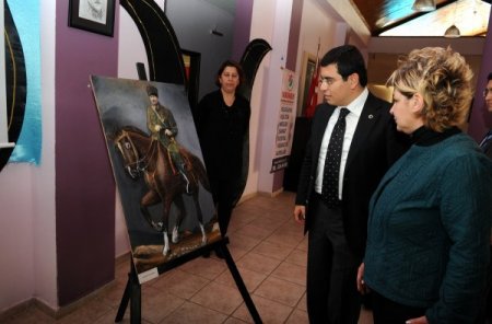 AKMEK’te, Atatürk’ün 73. ölüm yılı dolayısıyla resim sergisi düzenlendi. Sergide, AKMEK öğrencilerinin yaptığı el sanatları, takı, nakış, resim, kumaş boyama, Atatürk ve Türk bayrağı çalışmaları yer aldı. Pirinçten yapılan Türk bayrağı ile pasta hamuru ve strafordan üretilen Anıtkabir dikkat çekti.
