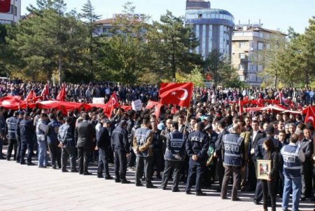 Cenaze törenine ellerinde Türk bayraklarıyla katılan vatandaşlar, sık sık terör örgütü aleyhine sloganlar attı. Törene, AK Parti Genel Başkan Yardımcısı Ekrem Erdem, AK Parti Aksaray milletvekilleri Ali Rıza Alaboyun, İlknur İnceöz, CHP Kayseri Milletvekili Şevki Kulkuloğlu, CHP Niğde Milletvekili Doğan Şafak, Aksaray Valisi Orhan Alimoğlu, Aksaray Belediye Başkanı Nevzat Palta, askeri yetkililer ve çok sayıda vatandaş katıldı. CİHAN
