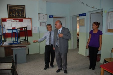 Adıyaman İl Milli Eğitim Müdürü Hasan Alaköse, Çemberlitaş İlköğretim Okulu'nda yaptığı incelemede temizlik, çevre düzeni, okul bakımı, sınıf tertibi ve öğretmen ders dağılım durumlarını değerlendirdi.