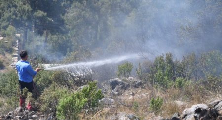 Antalya’nın Alanya ilçesinde makilik alanda çıkan yangın ormana ve çevredeki evlere sıçramadan kontrol altına alınarak söndürüldü.