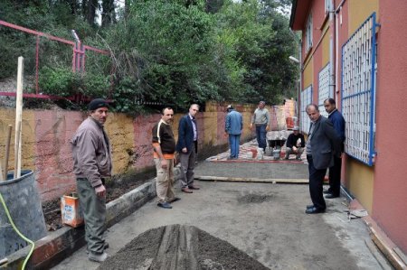 Alaplı Belediyesi ilçe merkezindeki okullarda başladığı çevre düzenleme çalışmalarını sürdürüyor.