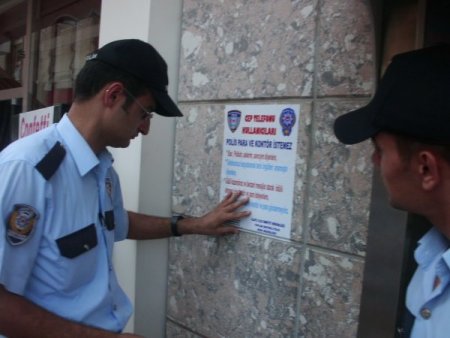 Zonguldak Alaplı ilçe Emniyet Müdürlüğü hazırladığı yapıştırmalı 'Polis Para Ve Kontur İstemez' afişlerini bankamatiklerin yanına yapıştırarak olası dolandırıcılık ve hırsızlık olaylarına karşı halkı uyarma ve bilgilendirme çalışmalarına başladı.