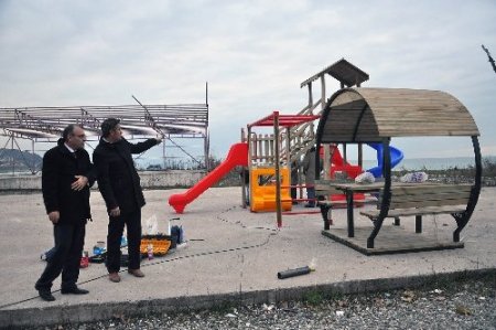 Zonguldak’ın Alaplı Belediyesi’nin Taşbaşı ve Erdemyuva Sitesi mevkii deniz dolgu alanı, 1. etap peyzaj çalışmaları ile güzelleşiyor. Dolgu alanına ailelerin ve çocukların hoşça vakit geçirecekleri oturma ve oyun grupları konuluyor.