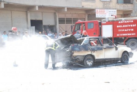 Seyir halindeyken bir anda alev topuna dönen araçtan son anda kurtuldu. Hatay’ın merkez ilçesi Antakya’da M.Ali Çam yönetimindeki otomobil, Hatayspor Tesisleri önünde bir anda alev aldı. Araç sürücüsü Çam, çevredekilerin uyarısıyla son anda kendini dışarı atarak kurtuldu.