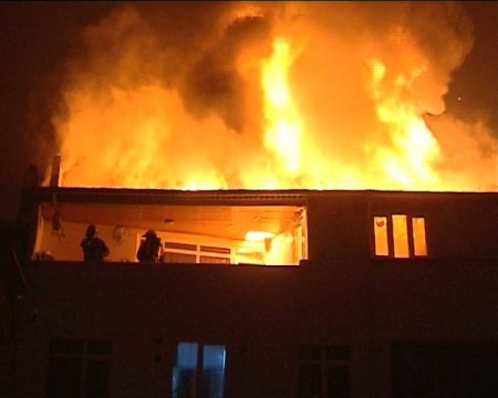Beyoğlu’nda, 5 katlı binanın teras katı çatısıyla birlikte alev alev yandı. Yangını söndürmek için terasa çıkan iki itfaiyeci alevler arasında mahsur kaldı. Arkadaşlarına seslerini güçlükle duyuran itfaiyeciler, merdiven aracıyla yapılan müdahaleyle ölümden döndü.