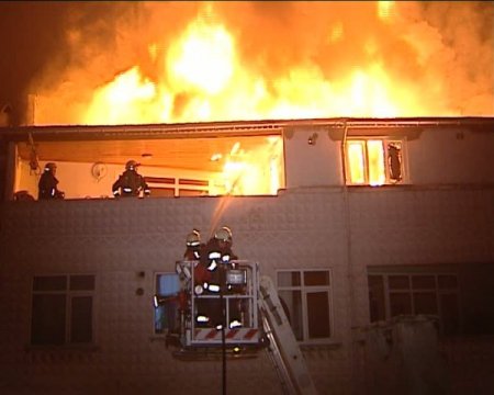 Çatıya çıkan bina sakinleri, kendi imkanlarıyla yangını söndürmeye çalıştı. Vatandaşların bütün çabasına rağmen alevler gittikçe büyüdü. Olay yerine güçlükle ulaşan itfaiye ekipleri, söndürme çalışmalarına başladı. İtfaiye, yanan binanın iki tarafına da merdiven aracı yanaştırarak yangına müdahale etmeye çalıştı. İki itfaiye eri de, aşağıdan uzatılacak hortumla yangına müdahale etmek üzere binanın teras katına çıktı. İki itfaiyeci, bir süre sonra bütün katı ve çatıyı saran alevler arasında kaldı.