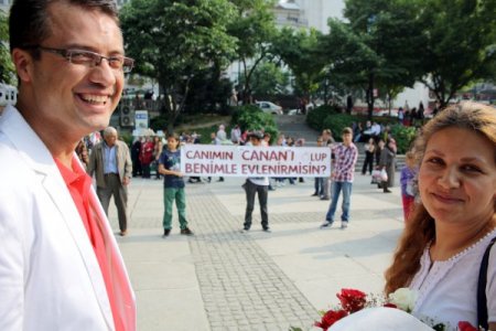 Desinatörlük yapan Harun Reşit Anbarcıoğlu (37) 8 ay önce tanıştığı hemşire Canan Gökdemir’e (32) görülmemiş bir yöntemle evlenme teklif etti. Kız arkadaşını alışveriş yapmak için çarşıya çağıran Harun Reşit, “Canımın ‘Canan’ı olup benimle evlenir misin?” yazılı bir pankartla Orhangazi Parkı’nda beklemeye başladı. Çarşıya gelen Canan Gökdemir, elinde bir demet çiçekle bekleyen Harun Reşit ile kameraları görünce şaşkınlığını gizleyemedi. Ardından 3 çocuk tarafından açılan “Canımın ‘Canan’ı olup benimle evlenir misin?” yazılı pankartı gören Gökdemir, adeta şoke oldu.